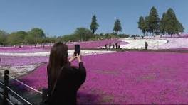 A carpet of flowers in vibrant hues of pink, blue, white and other colors is attracting visitors to a park in Saitama Prefecture near Tokyo.